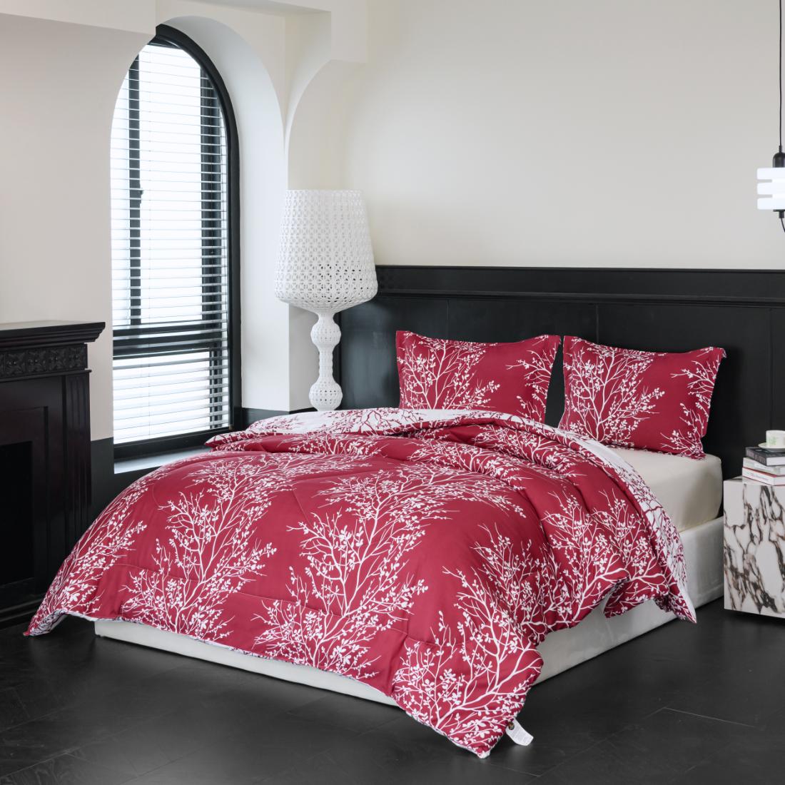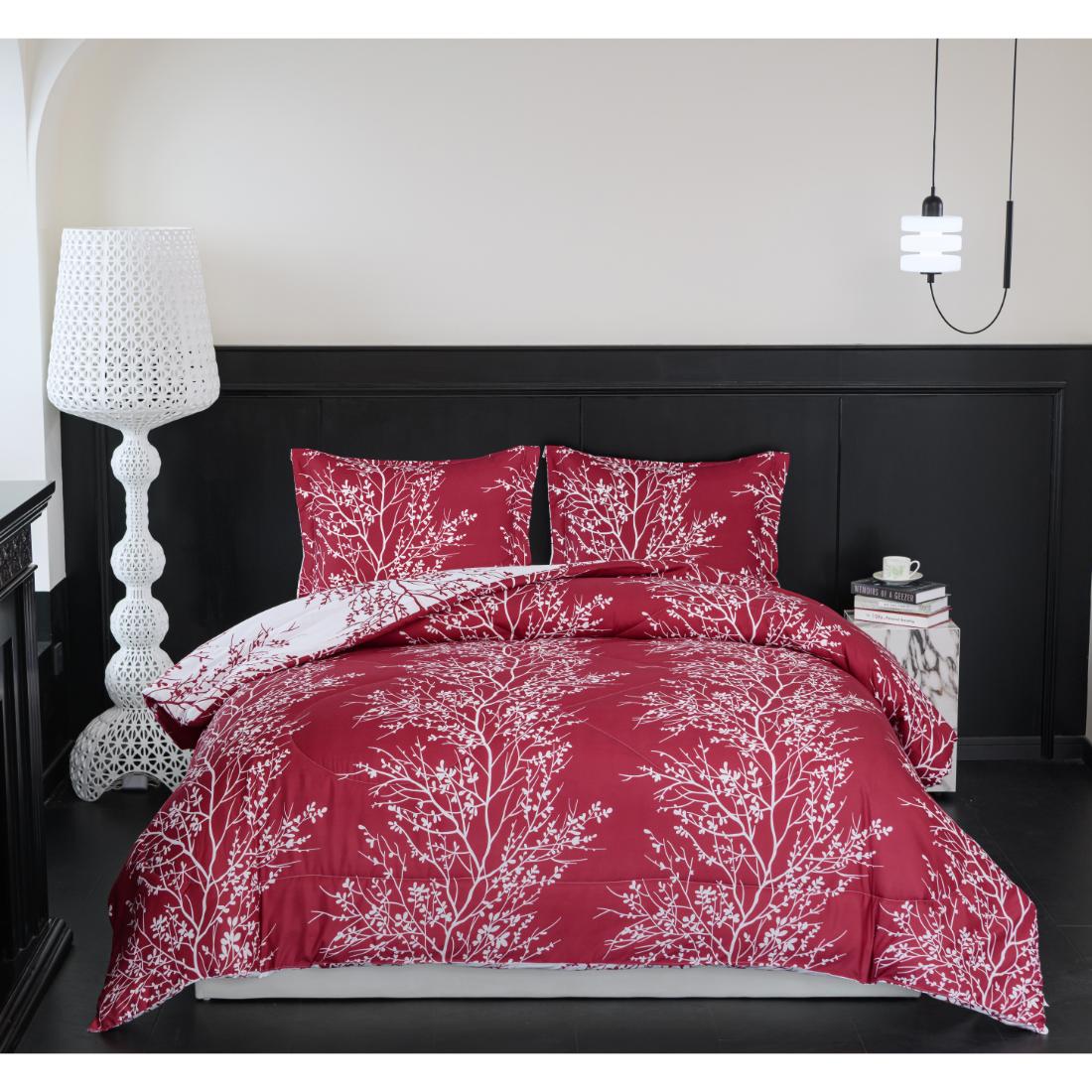 3-Piece Microfiber Comforter Set – Foliage Burgundy